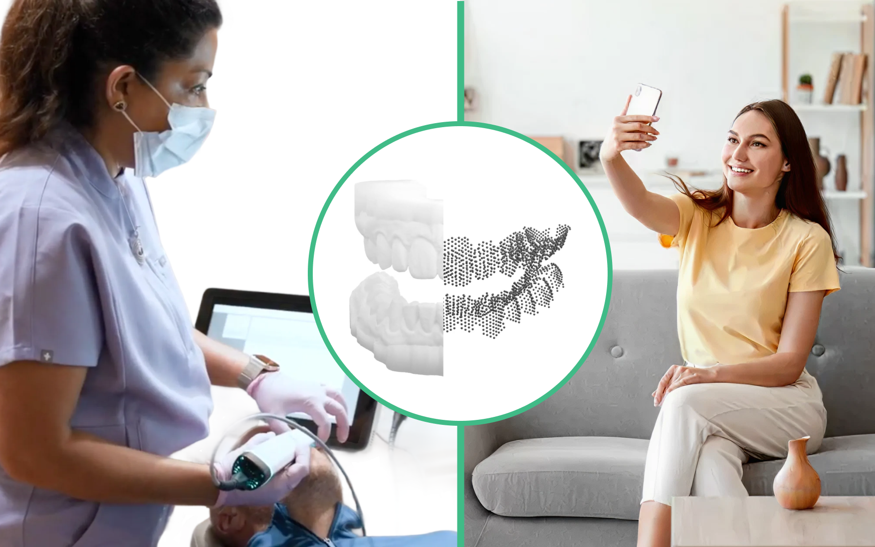 We offer two pathways to capture your oral anatomy: A clinical-grade 3D model captured with scanners for highest fidelity. For those seeking convenience, OralTwin.ai has created a novel smartphone technique using advanced AI models. Both pathways lead to a detailed, dimensionally accurate digital representation of your mouth.